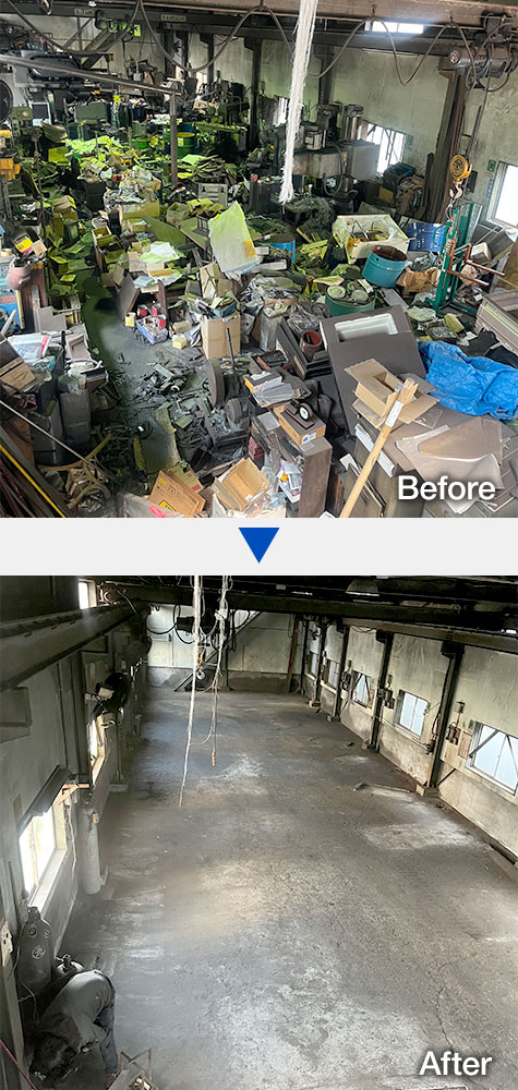 | 金属加工業 様 | 大阪府 八尾市 | 令和6年 4月 | 工場内機械・残置物撤去 |