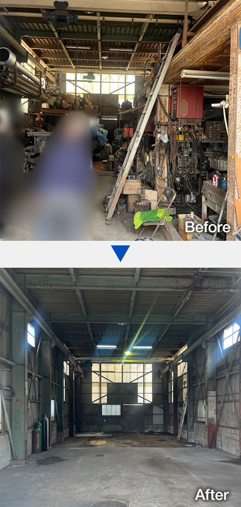 | 金属加工業 様 | 大阪府 八尾市 | 令和6年 4月 | 工場内機械・残置物撤去 |